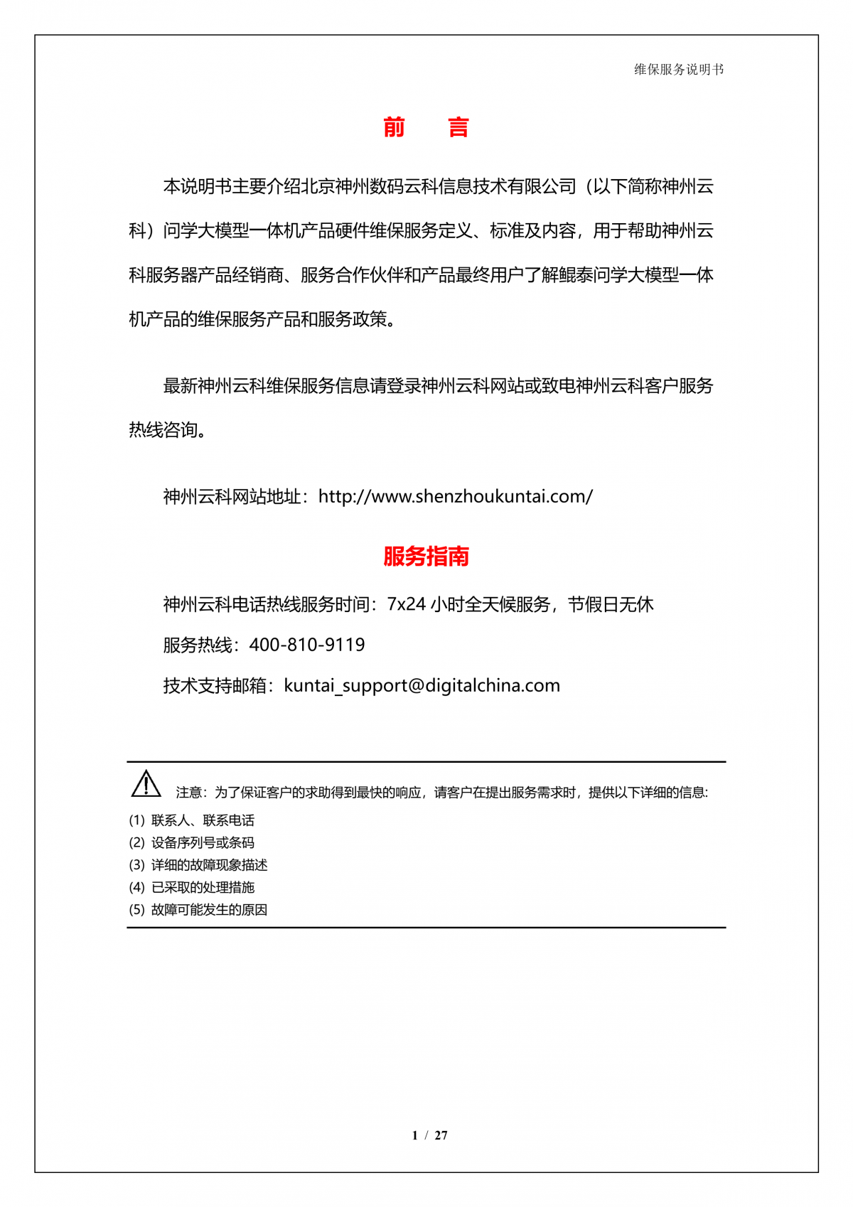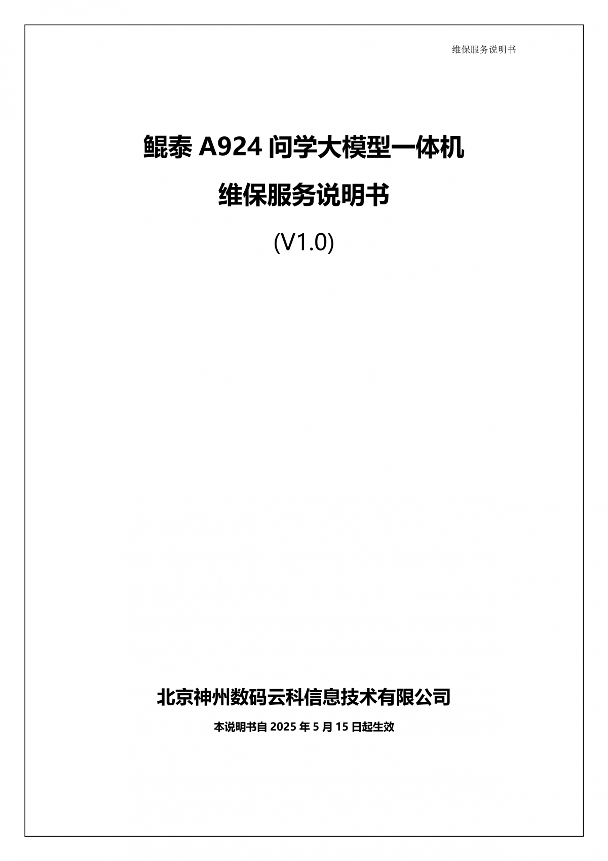 顺发配资A924 DS大模型一体机硬件维保服务说明书_V1.1